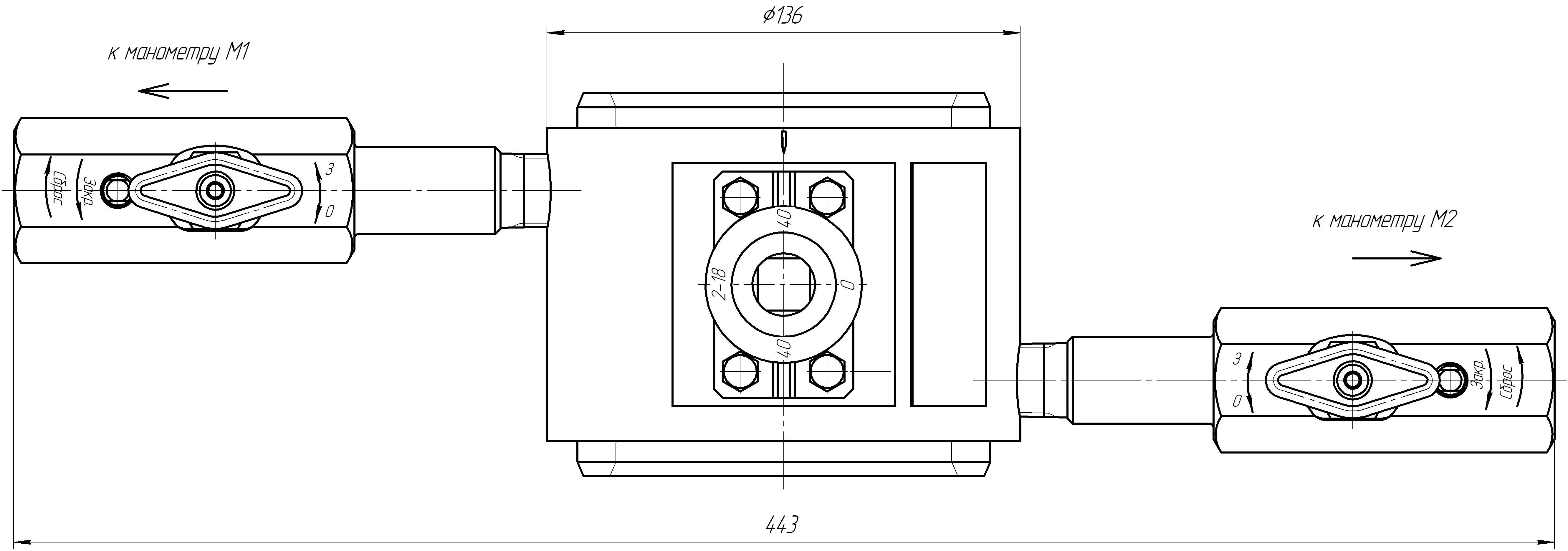 Рис. 2 Вид штуцера ШДФ 10М со стороны лимба переключения режимов работы штуцера